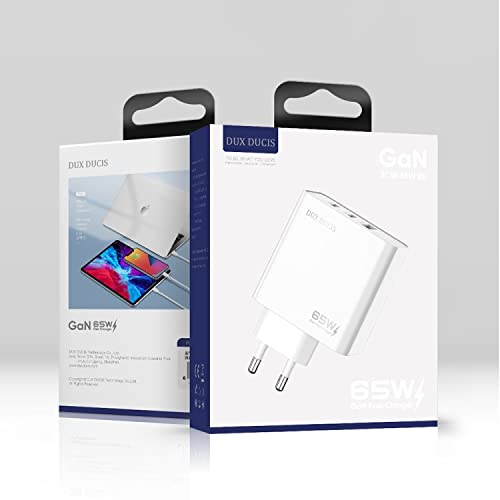 DUX DUCIS C90 65W GaN Fast Charger Quick Charge 4.0 3.0 AFC SCP USB PD Charger GaN 65W USB C Charger PD USB-C Type-C Fast USB FOLDABLE Charger for MacBook Pro iPhone Samsung 65W GaN Fast Charger Description 1. Input voltage: 100-240V, 50-60Hz 2. Light weight and easy to carry 3. Can charge 3 devices at the same time 4. Can charge laptops, mobile phones, tablets and other devices 5. Built-in multiple safety protection, use at ease 6. The shell is made of PC fireproof material, which is heat resistant and flame retardant, and it is safer to charge 7. Size: 97x60x28mm 8. Weight: 131g